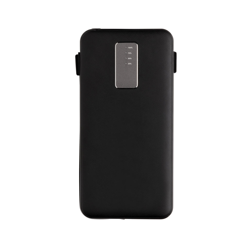 Ultratunn 10.000 mAh powerbank i ABS, enkel att alltid ha med sig. Den 3-i-1 integrerade kabeln gör powerbanken kompatibel med de flesta mobila enheterna på marknaden. Fulladdad kan powerbanken ladda din mobil upp till fem gånger. Powerbanken har ett långvarigt A-graderat högdensitet lithium polymer-batteri. Indikatorlampan anger energinivån så att du vet när det är dags att ladda upp den. Input: 5V/2A Output: 5V/2A