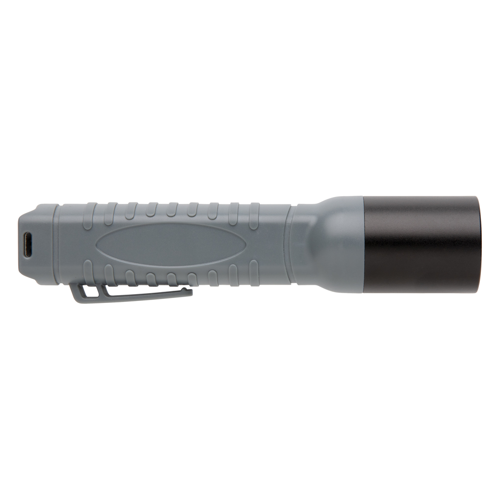 3W lättvikt ficklampa med klart ljus som är smidig att ta med sig. Tillverkad i ABS och aluminium med bältesclip. 180 lumen, arbetstid 2 timmar. En stråle på upp till 200 meter. IPX 44. Batterier medföljer.