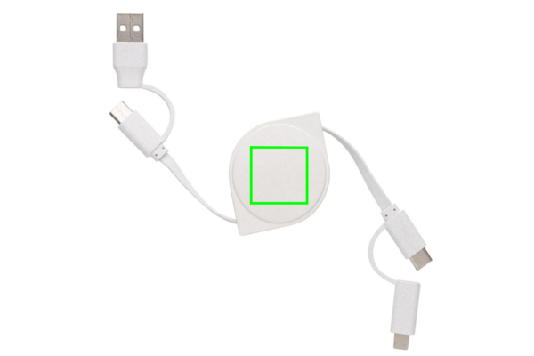 6-i-1 utdragbar kabel där höljet är tillverkat av RCS certifierad återvunnen ABS och kabeln från återvunnen TPE. RCS (Recycled Claim Standard) är en standard för att verifiera återvunnet innehåll i en produkt genom hela leveranskedjan. RCS är den standard som används när en del av en produkt är tillverkad av återvunna material. Totalt återvunnet innehåll: 59% baserat på total produktvikt. Med 5 olika kontakter: USB C in, USB A in, type C out, IOS out och micro USB out. Type C input passar perfekt för nyare enheter och macbook datorer som endast har type C output. Kabeln har även en vanlig USB A output så att den kan användas för att ladda enheter från olika output-källor. 100% PVC-fri.