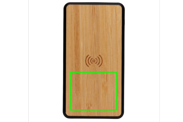 8.000 mAh powerbank med trådlös laddning tillverkad av RCS (Recycled Claim Standard) certifierad återvunnen ABS med soft touch finish och FSC®certifierad bambu. Totalt återvunnet innehåll: 20% baserat på total produktvikt. RCS certifiering säkerställer en helt certifierad leveranskedja av de återvunna materialen. Stödjer 5W trådlös laddning samt laddning med kabel via USB port. Input både Type C och micro USB. Med en fulladdad powerbank kan du ladda din mobil upp till fyra gånger. Powerbanken har ett A-graderat 8.000 mAh lithium polymer-batteri. Strömindikatorn visar energinivån så att du vet när det är dags att ladda på nytt. Micro input 5V/2A Type-C input 5V/2A USB Output 5V/2.4A. Trådlös Output 5W 5V/1A. Laddningskabel i RCS certifierad TPE medföljer. Levereras i FSC® mix förpackning.