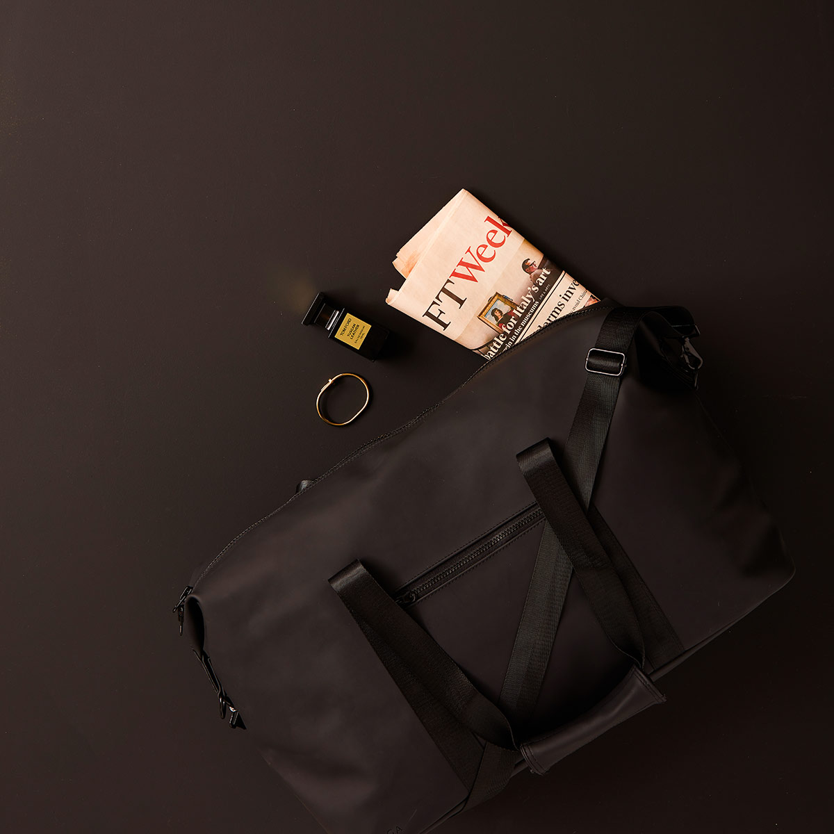 Med denna rymliga weekendväska över axeln går du inte obemärkt förbi då den ger uttryck för stil och minimalism på samma gång. Väskan har en justerbar axelrem. För att ge bättre organisationsmöjligheter har väskan utrustats med en ficka med blixtlås på ena sidan och en liten ficka med tryckknapp på den andra. Tillverkad i nubuck-PU vilket ger dig en väska med vattenavvisande egenskaper.