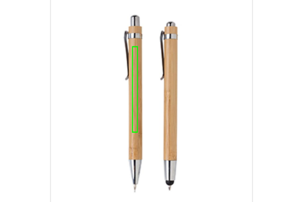 Bambu pennset i presentförpackning. Bambu touchpenna med blått bläck och stiftpenna med 3st 0.7mm stift.