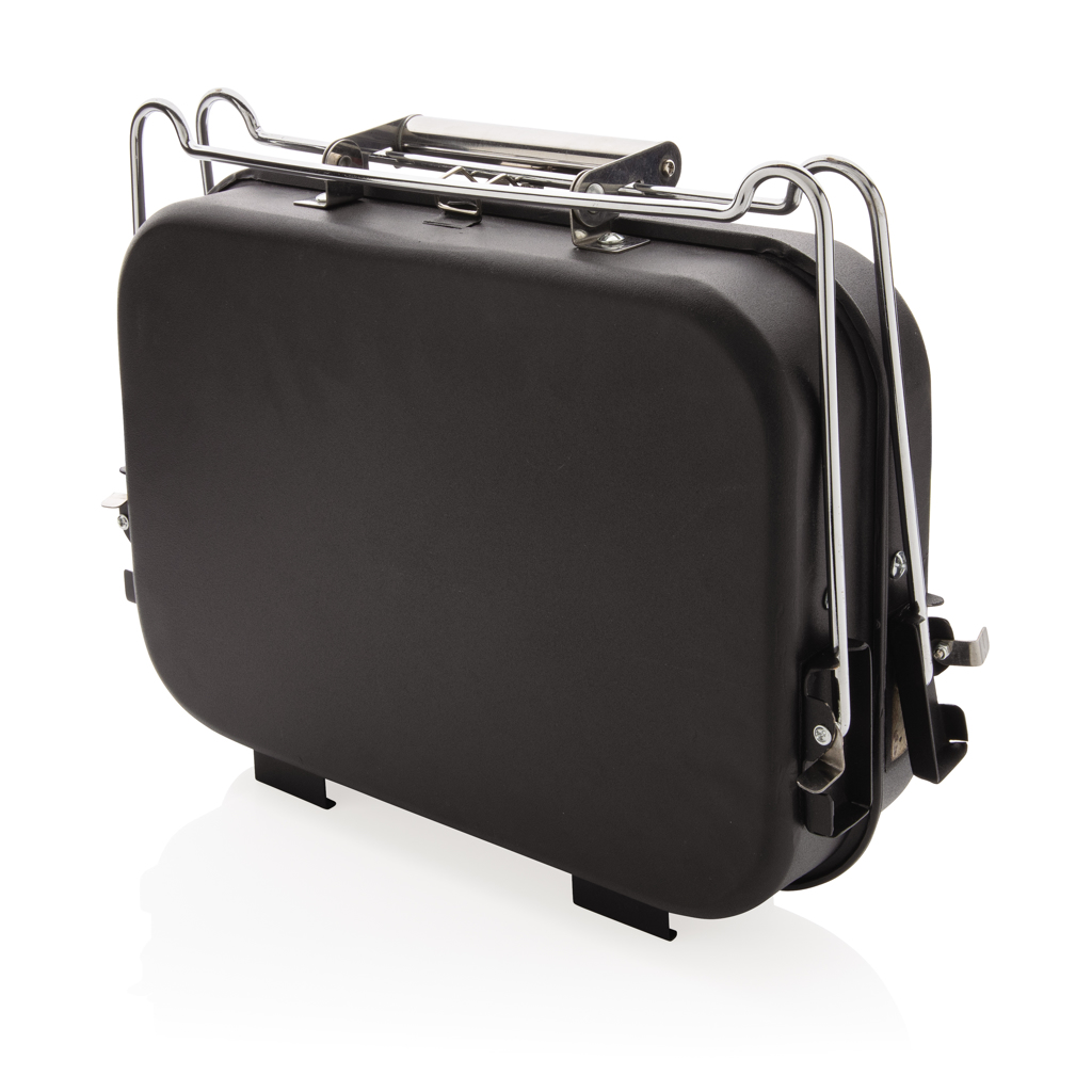 Bärbar och användbar grill i resväske-stil med avtagbart koltråg och bärhandtag. Grillen har en lättvikt men hållbar konstruktion i stainless steel med svart pulverlackerad finish och spännen för att låsa fast locket. Perfekt för en spontan utflykt.