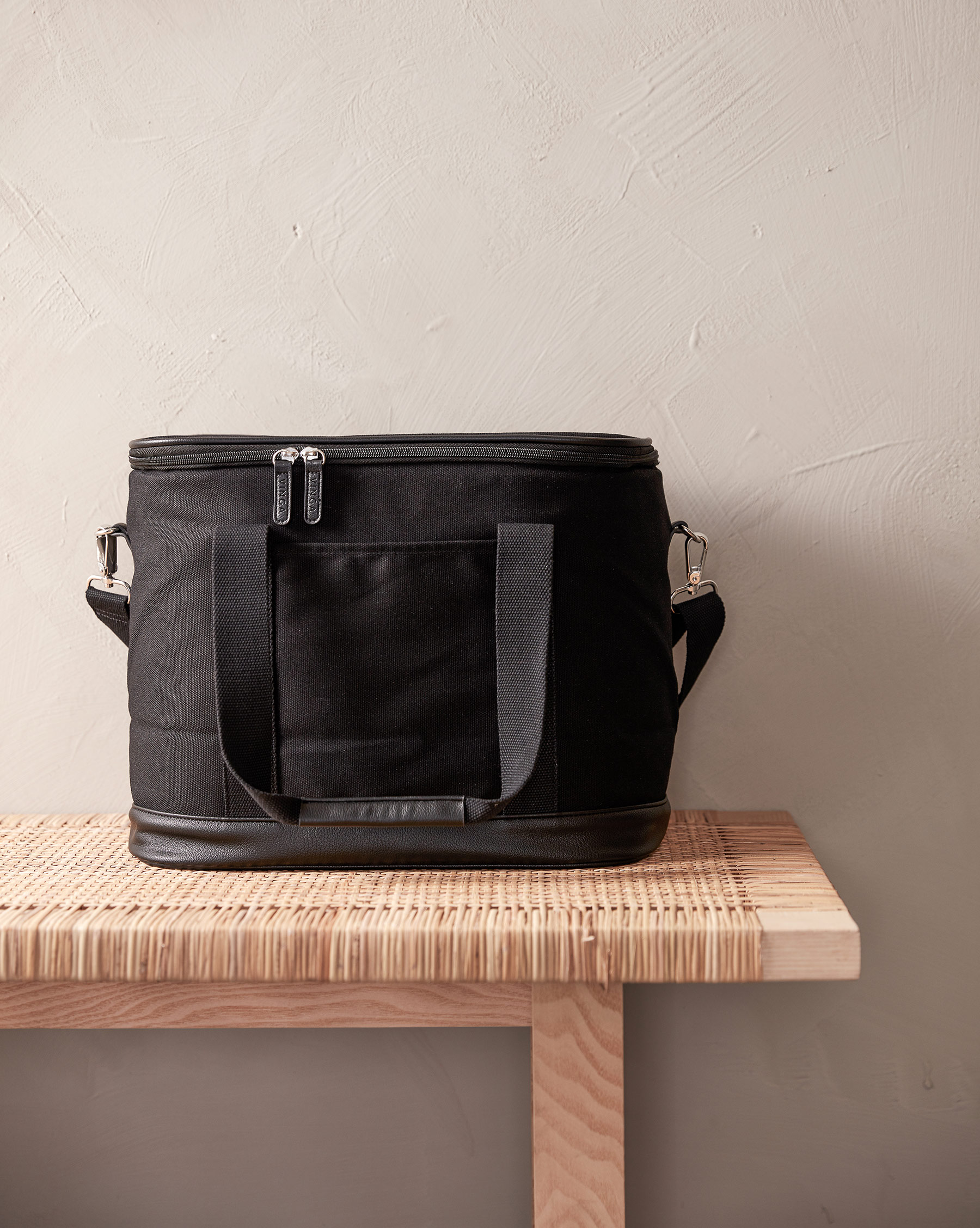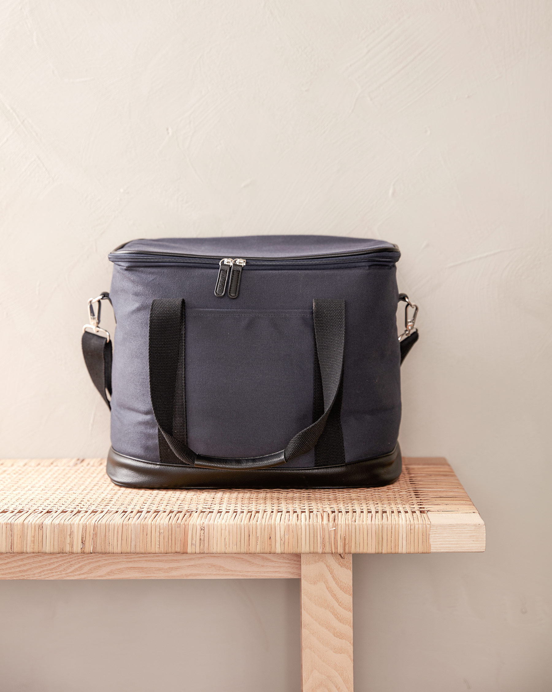 Stilren och klassisk kylväska i bomullscanvas med diskreta detaljer i veganläder som tilltalar många. Långa handtag och en justerbar axelbandsrem för optimal komfort. Kylväskan är isolerad med extra tjockt skum och fodret på väskan är så kallat PEVA som är enkel att hålla ren och fräsch. Väskan har en mer diskret karaktär tillskillnad mot de mer traditionella kylväskorna. Perfekt för citypicknicken och lika snygg som deli-väska när man handlar i saluhallen.