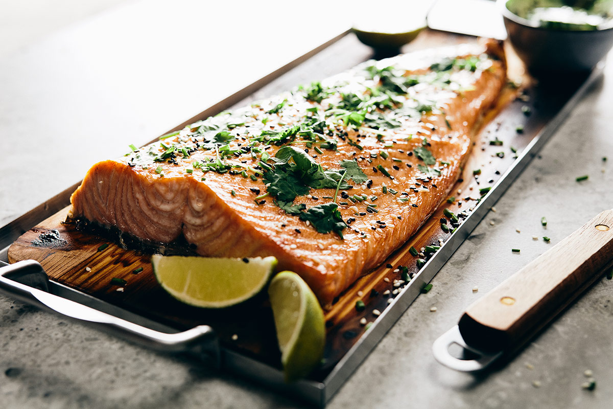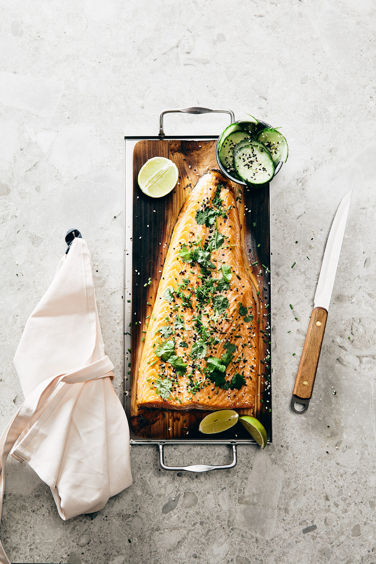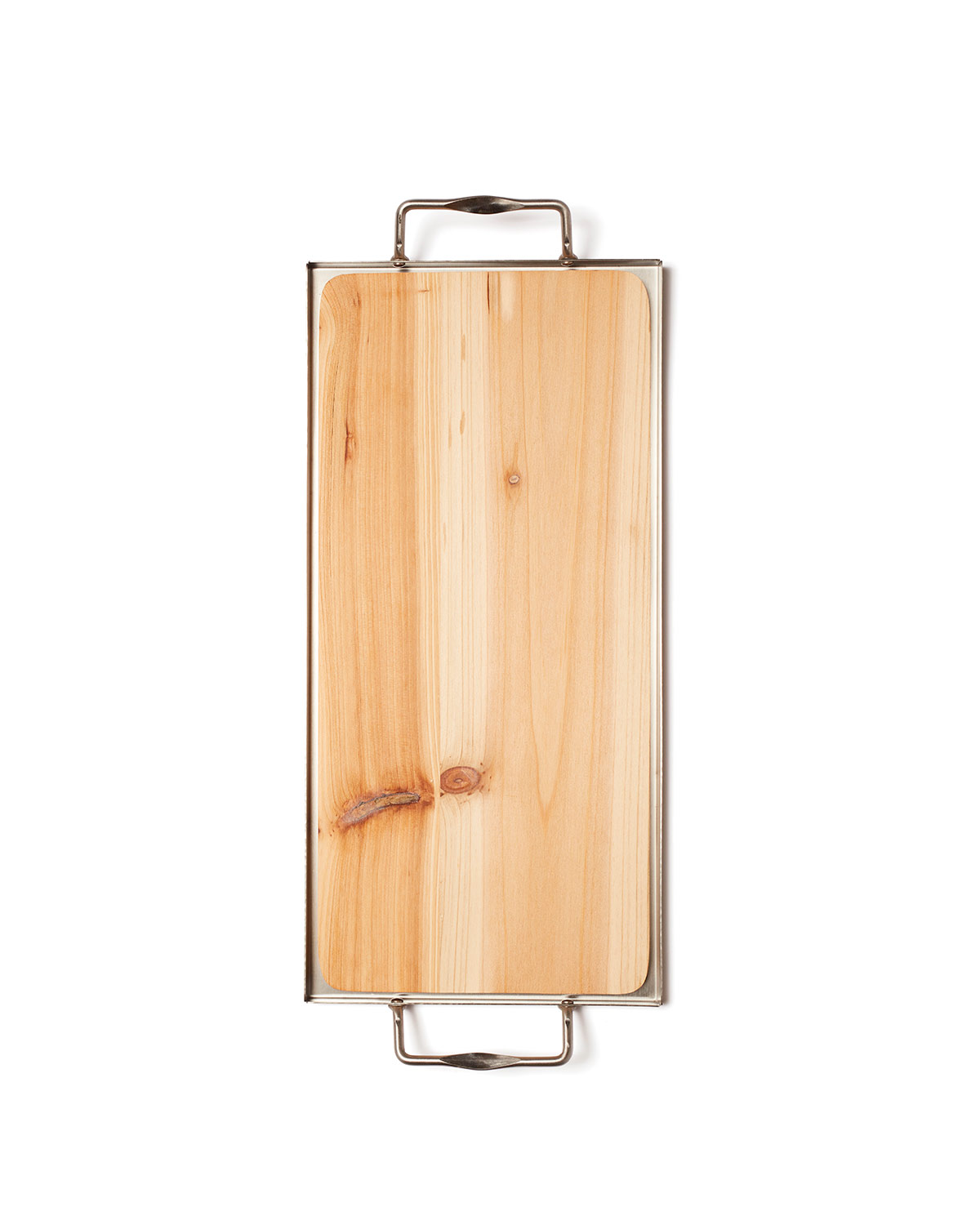 Fyll din mat med den subtila doften av cederträ genom att grilla rätt på denna träbräda (tips: blötlägg den i vatten i ungefär en timme i förväg för att förbättra smaken och förlänga livslängden på brädan). När det är dags att servera, lägg plankan rakt på denna rostfria stålbrickan, som kommer med handtag för enkel transport direkt till bordet.