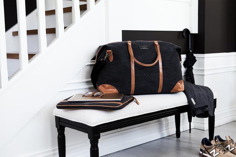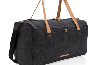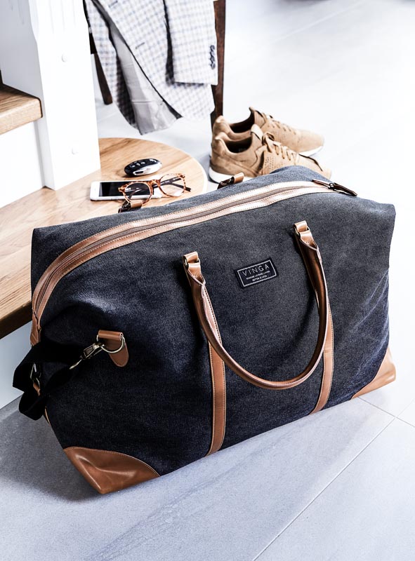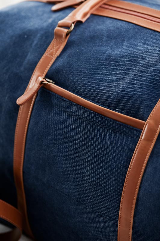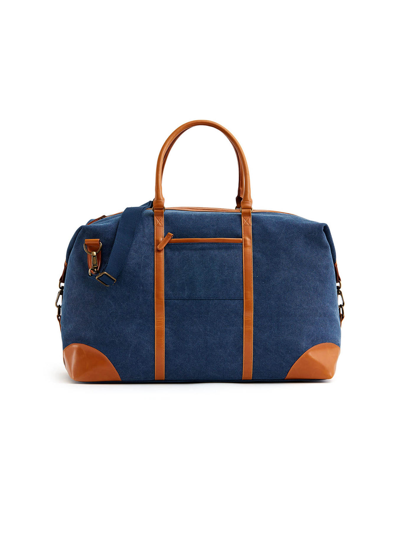 Weekendväska i stentvättad canvas med detaljer i skinnimitation. Gott om utrymme för en längre weekend. Praktiskt utrustad med både handtag och axelband vilket är justerbart. Axelremmen är kopplad diagonalt över väskan för en bättre bärkomfort. Väskan har en liten ficka på långsidan.