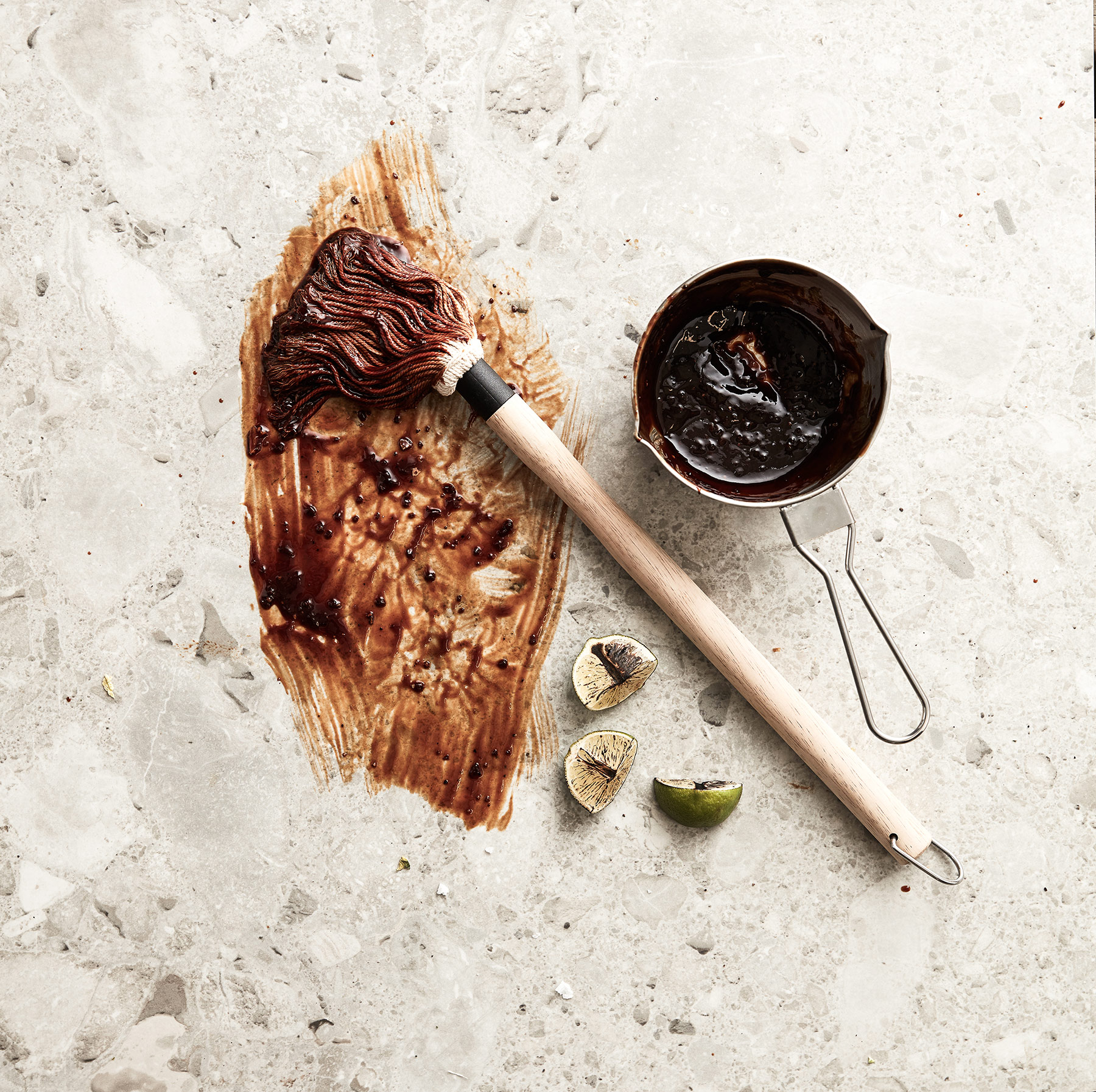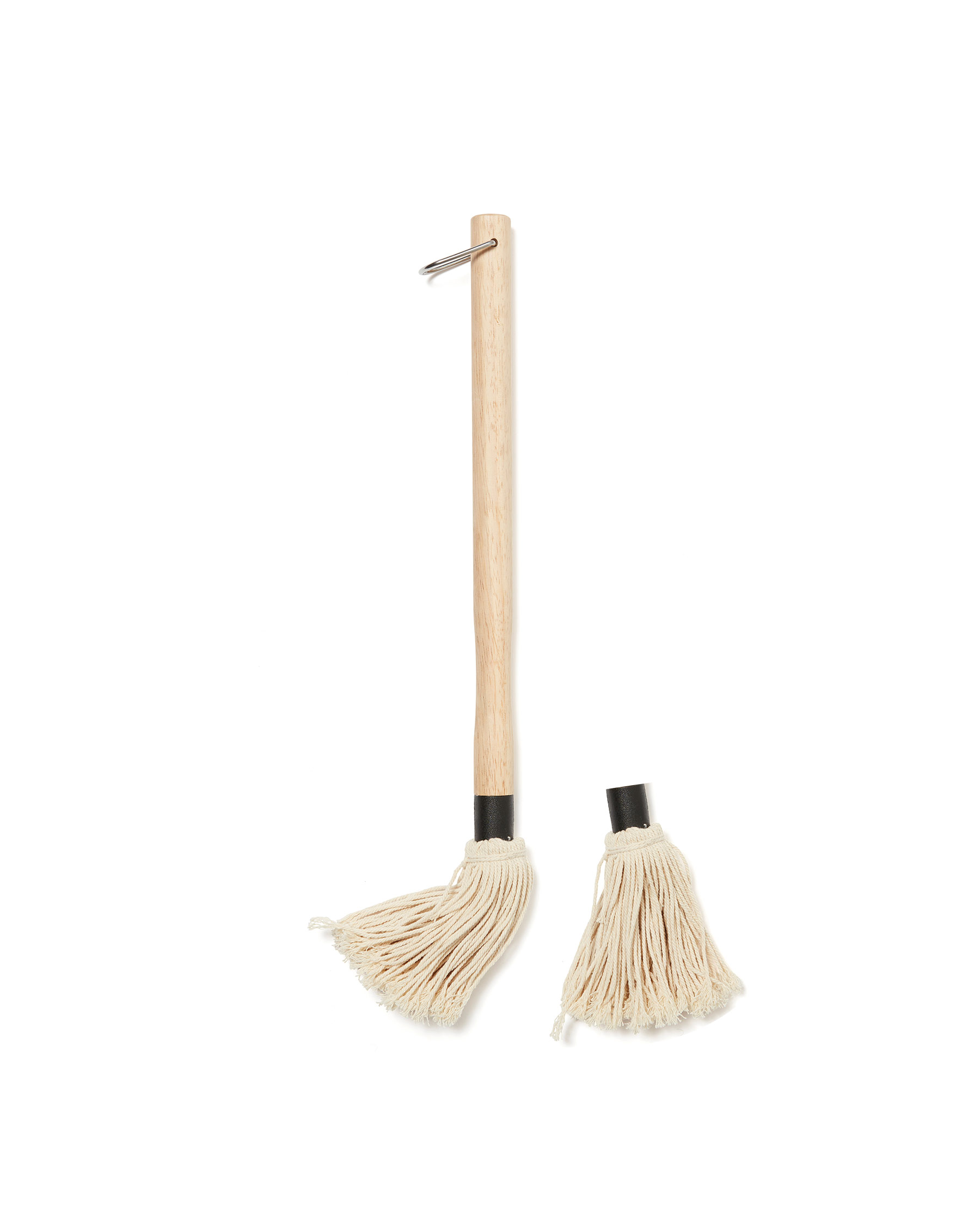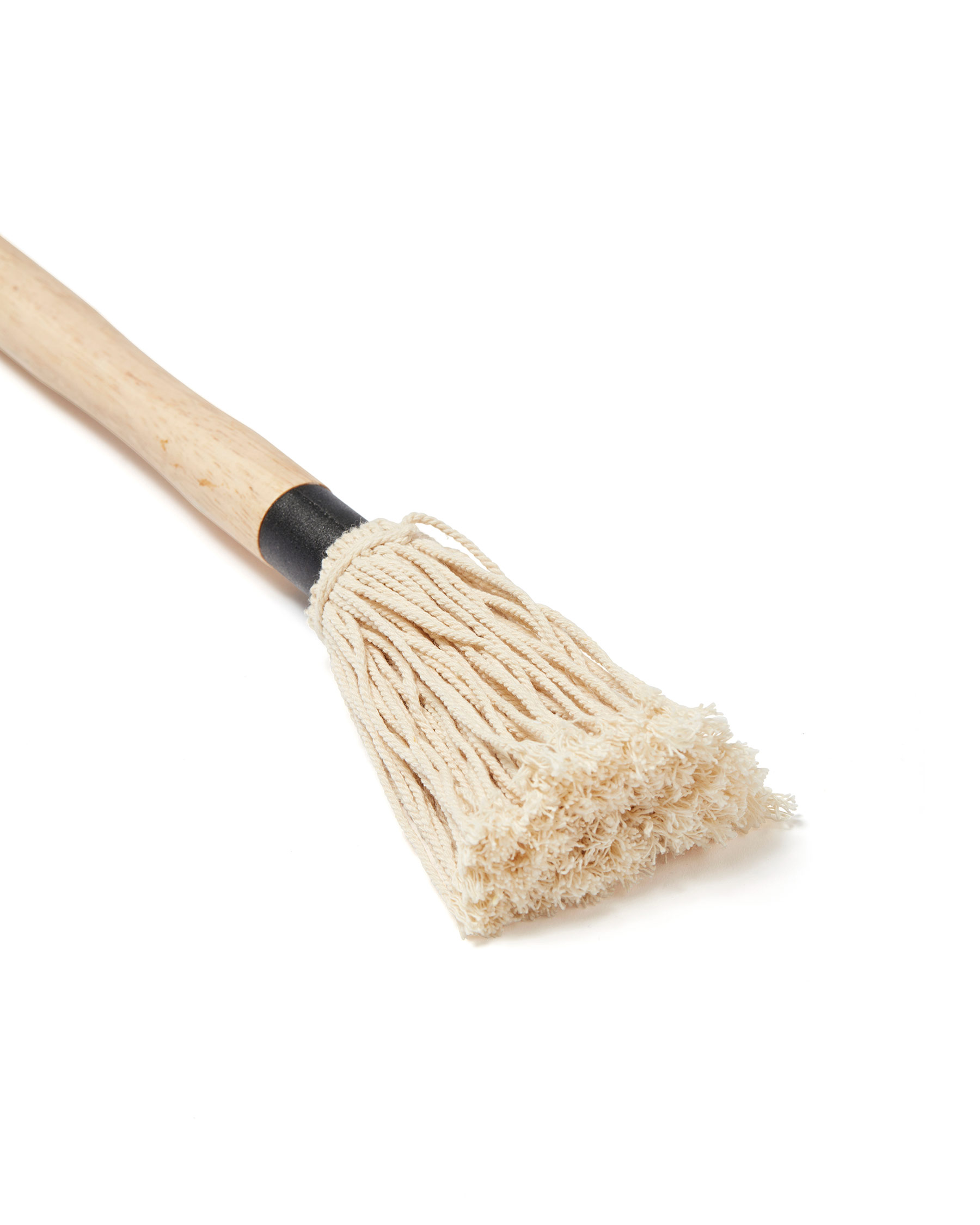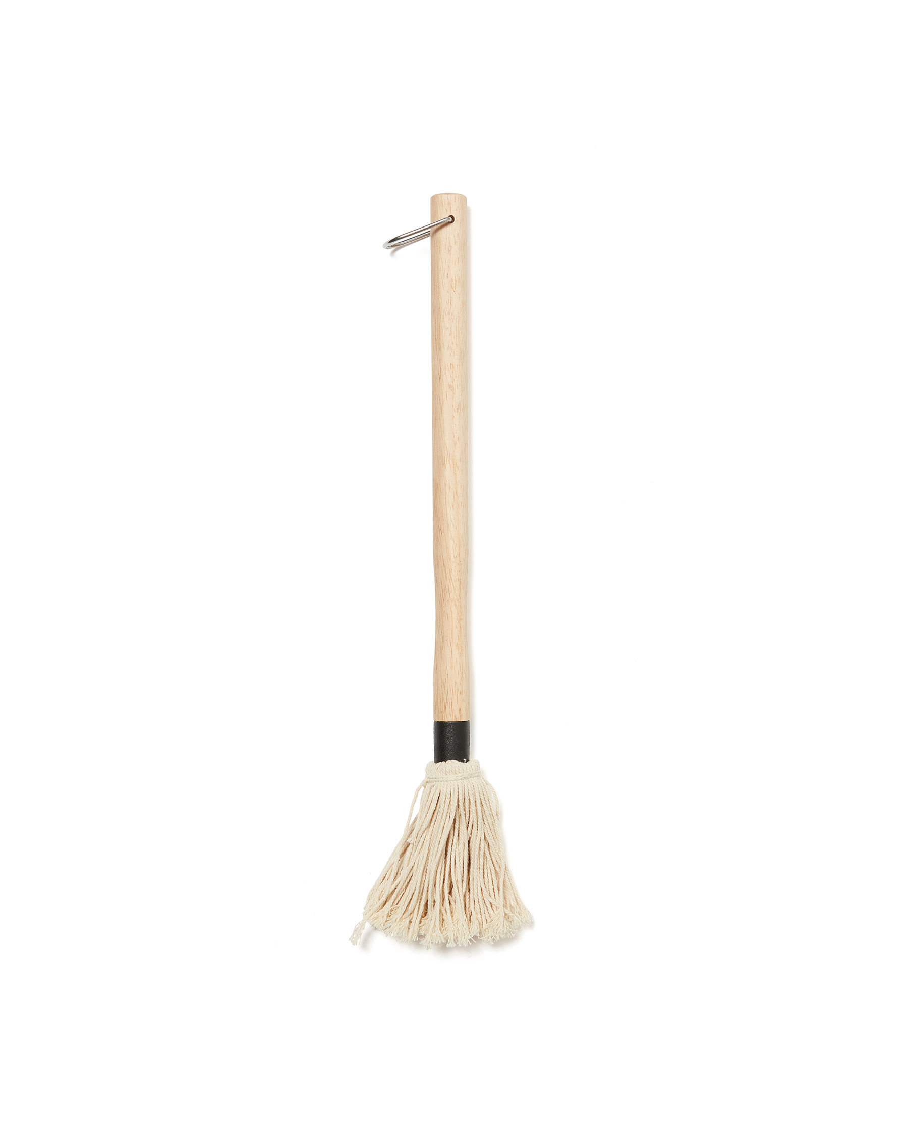 En marinadmopp som underlättar pensling av lättflytande marinader och såser. Använd moppen för att pensla på lättflytande marinad under hela grillningen för extra mycket smak. Denna marinadmopp kommer med två mopp-huvuden i bomull och ett långt handtag av trä. Efter användning, blötlägg moppen i diskmedel och vatten och tvätta sedan för hand, låt lufttorka. Moppen kommer att bli färgad av marinad och grillens yttre påverkan.
