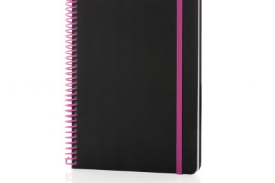 Deluxe A5 spiralbunden anteckningsbok i färg med elastiskt band. Med 80 blad/192 vita linjerade sidor 70g/m2.