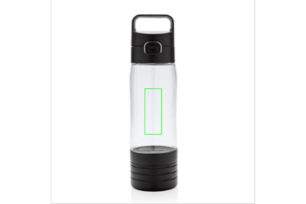 Läckagesäker tritanflaska med låsfunktion och handtag. Volym: 600ml. Bottendel med trådlösa hörlurar. 600 mAh batteri ger en speltid på upp till 4 timmar. 50cm lång micro USB-kabel medföljer. Registrerad design®