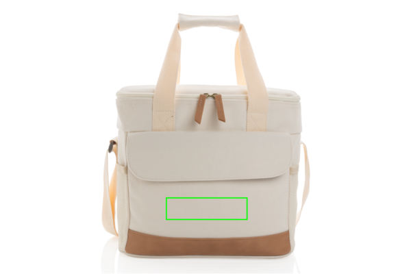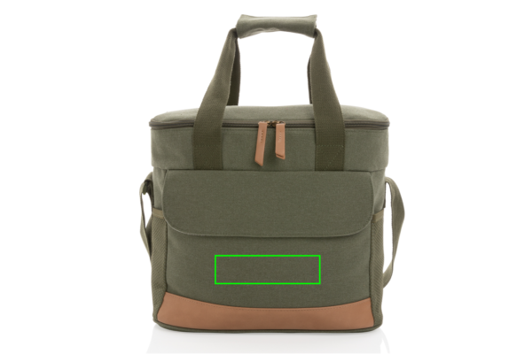 Packa din picknick i denna tjusiga kylväska. Kylväskan i 16 oz. återvunnen canvas har plats för upp till 20 burkar. Med 2 mesh sidofack och 1 frontfack för extra förvaring. Med detaljer i PU. AWARE™ spårämne som validerar användandet av återvunnen canvas. 2% av intäkterna för varje såld Impact-produkt kommer att doneras till Water.org. 60% återvunnen bomull och 40% återvunnen polyester. Foder i PEVA.