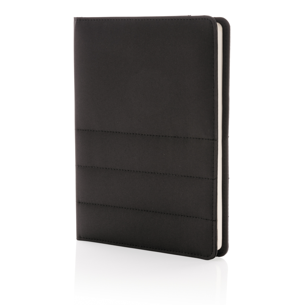 Håll dig organiserad med denna A5 AWARE™ RPET portfolio. I portfolion finns en matchande anteckningsbok. Anteckningsboken har 64 blad/128 sidor återvunnet krämfärgat 80gm/s linjerat papper. På insidan finns ett stort fack, ett mobilfack, 2 kortfack och pennögla. Både yttertyg och foder består av AWARE™ polyester tillverkad av 100% återvunna PET flaskor. AWARE™ använder endast, med säkerhet, återvunna material som går att spåra till källan, det gör detta materialet verkligt unikt. Genom att använda återvunna material kan vi spara stora mängder vatten vilket har en positiv påverkan på miljön. Insida och utsida 100% AWARE™ återvunnen polyester. PVC-fri.