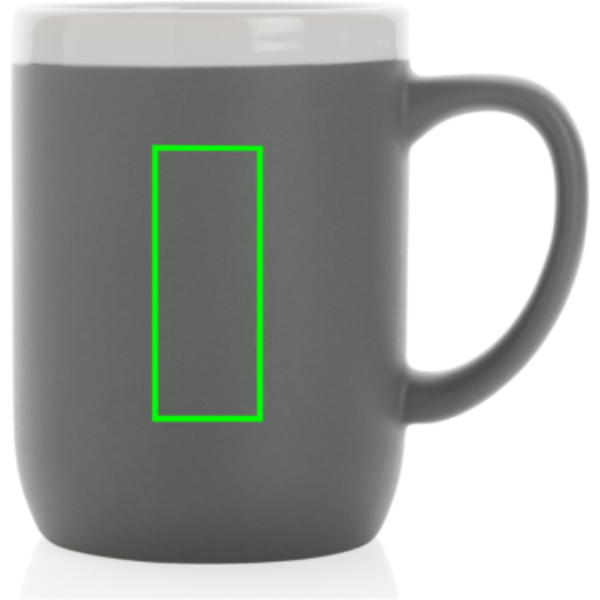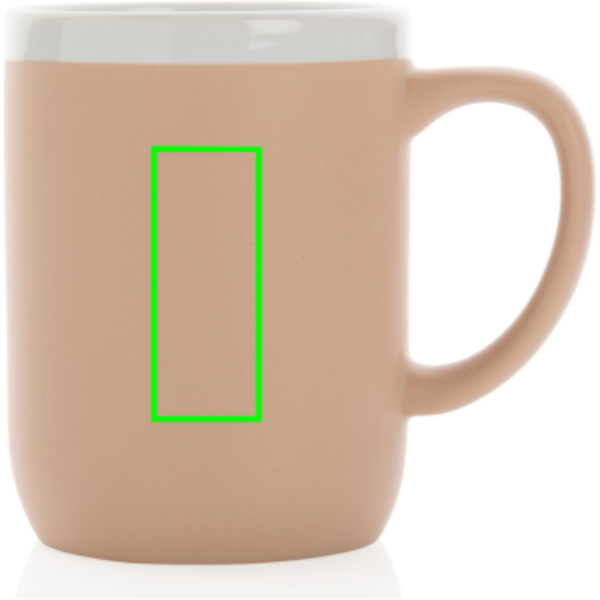 Keramikmugg med en ren och enkel utstrålning. Den vita kanten ger en extra fräsch känsla. Muggen är glansig på insidan och matt på utsidan. Tål maskindisk enligt EN12875-1 (minst 125 tvättcykler) för alla dekorationsmetoder. Levereras i giftbox. Volym: 300ml.