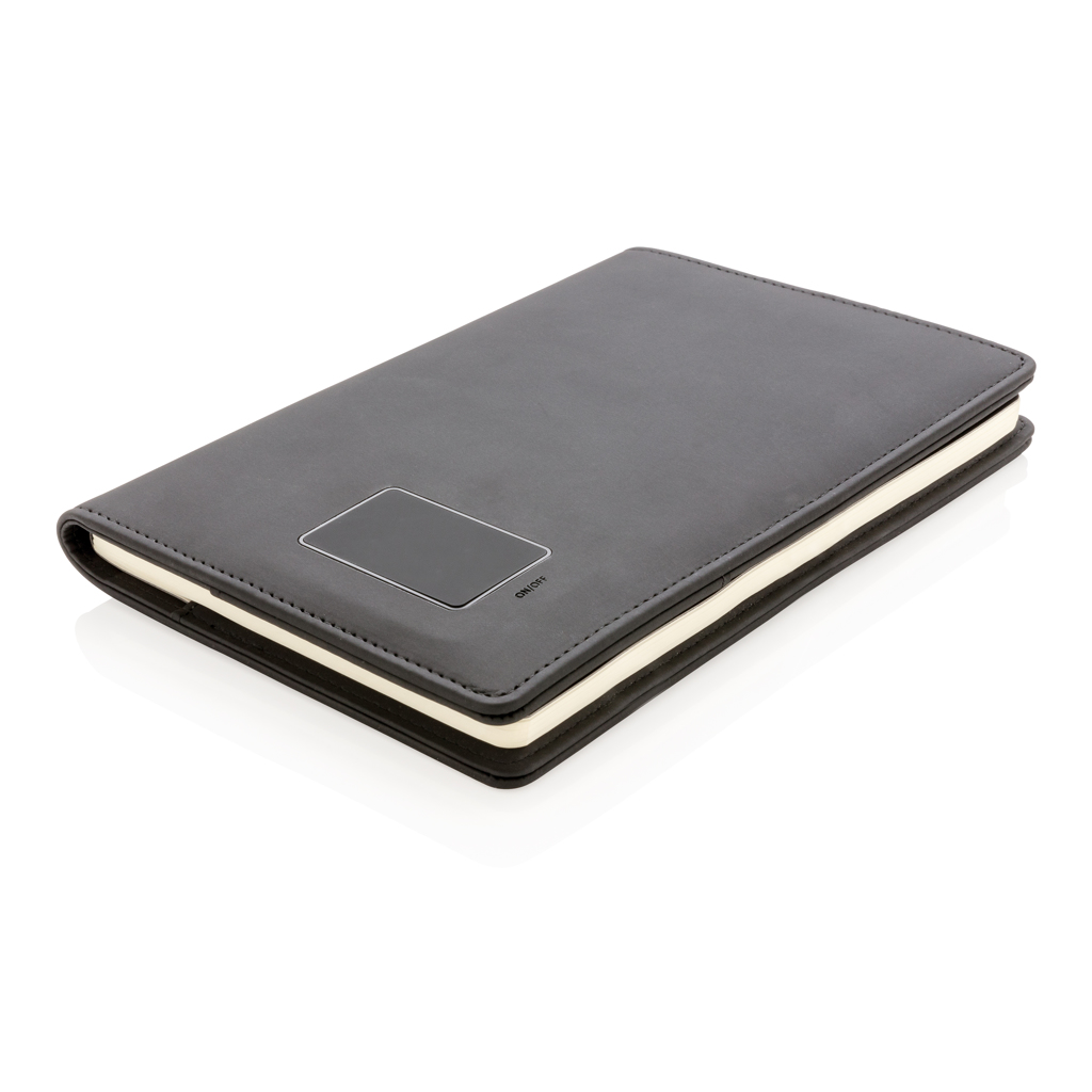 Visa din logga på ett unikt sätt. Framsidan av anteckningsboken innehåller ett ljus för att lysa upp loggan när den har graverats. Inkl. två CR 2032 batterier och avtagbar anteckningsbok med 128 linjerade, cremefärgade sidor, 80g/m2.