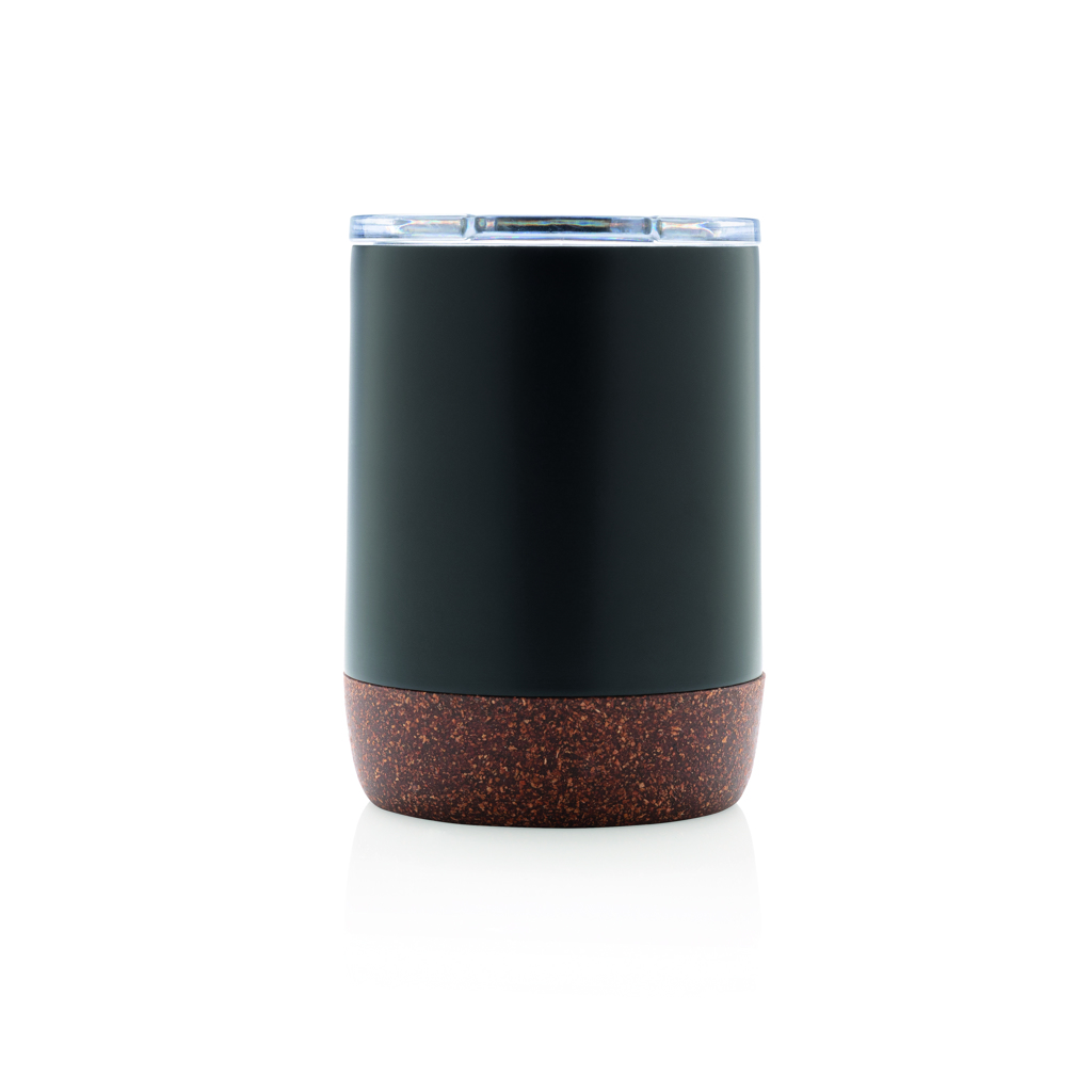 Vakuumisolerad mugg med detaljer i kork. 304 SS på insidan och 201 SS på utsidan. Håller din dryck varm i upp till 5 tim och kyld i upp till 15 tim. Passar i de flesta kaffemaskiner. Volym: 180ml.