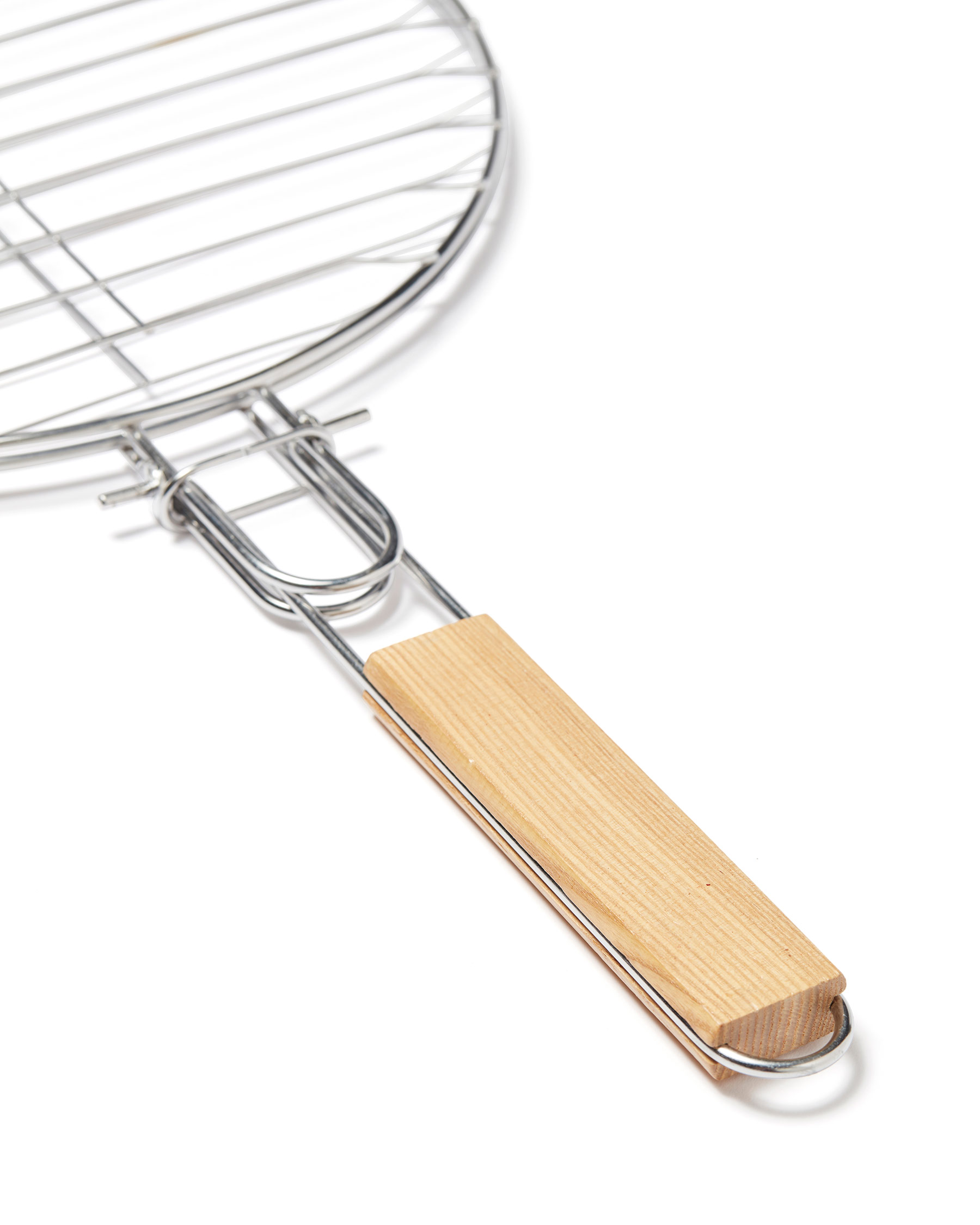 Praktiskt och hopfällbart grillhalster som är perfekt att ta med på utflykter eller att använda hemma på grillen. Lägg det du vill grilla mellan de två grillgallerna och lås grillhalstret. Maten hålls på plats och det är enkelt att grilla maten på båda sidorna över den öppna elden eller på grillen.