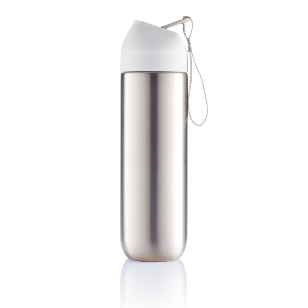 Neva är ett alternativ i kampen mot engångsvattenflaskor i plast. Tack vare att den 500 ml stora Neva-flaskan är tillverkad av stainless steel 304 kan den användas om och om igen. Tygremmen har dubbla funktioner. Den fungerar både som bärhandtag och som snabbutfällning av drickpipen. Registrerad design®