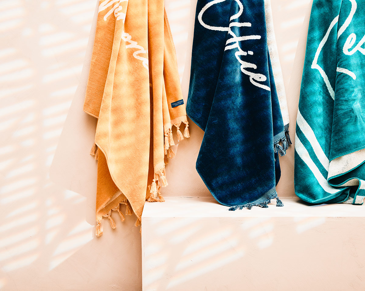 Velourbadlakan tillverkat i 100% ekologiskt odlad bomull (GOTS). Handduken är perfekt att ta med sig ner till stranden eller till poolen och gör din utevistelse till ett speciellt tillfälle.