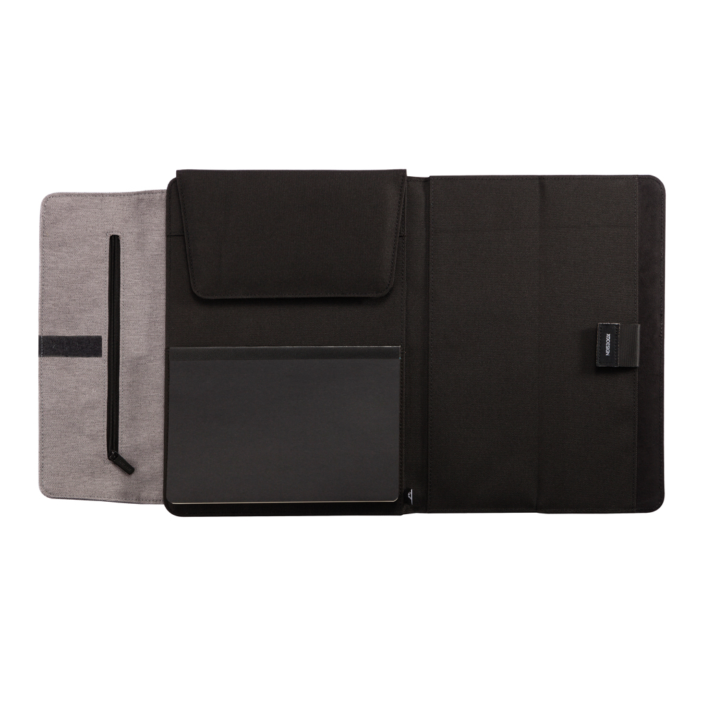 När du öppnar upp Seattle öppnar du upp ditt nya kontor. Passar utmärkt för din tablet/surfplatta och naturligtvis kan du ställa den upp. Innehåller flera fickor för allt du behöver. I den mest kompakta form. Tillverkad av rPET (återvunna PET-flaskor).