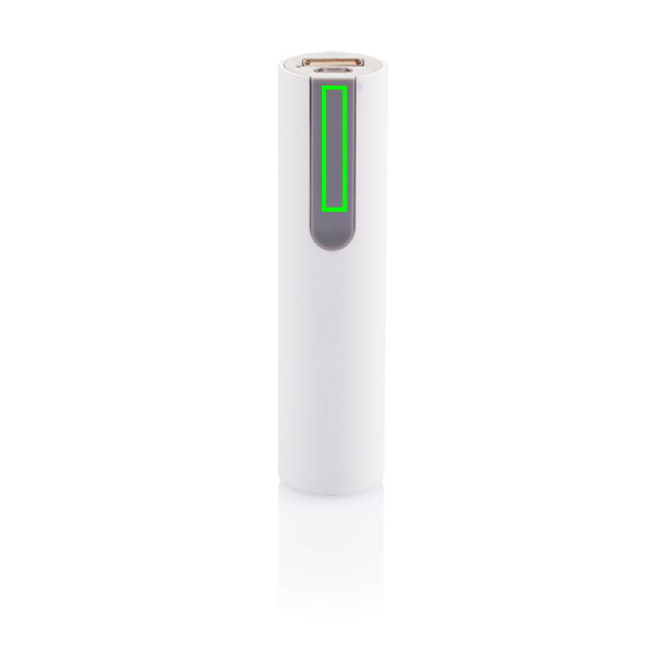 Praktisk powerbank i cylinderformad design. 2.200 mAh inbyggt litiumbatteri. Output 5V/1A, input 5V/800 mA. Den smarta designen gör att man kan avlägsna batteriet när det behövs bytas ut och återvinnas. Ladda upp din powerbank med medföljande Micro USB-kabel.