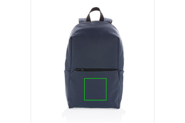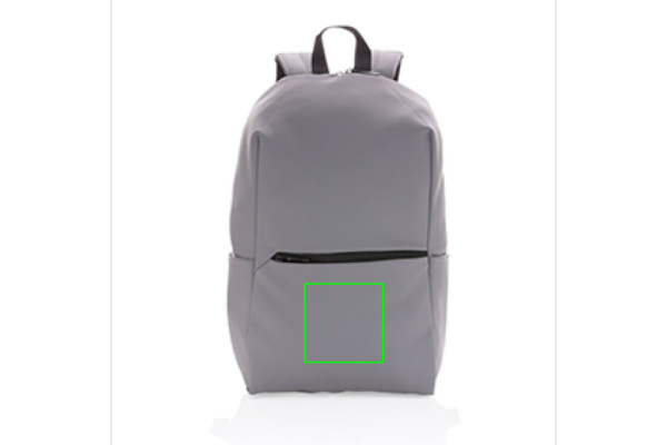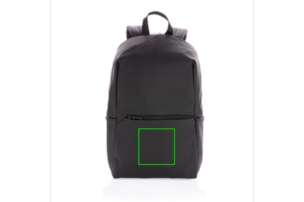 “Minimalistisk, modern ryggsäck i PU. Laptopfack med plats för 15.6″” laptop, ett rymligt huvudfack, 2 innerfack och 2 pennöglor. Mesh-vadderad baksida, justerbara axelremmar. Utsida 100% PU. Insida 100% 210D polyester. PVC-fri.”