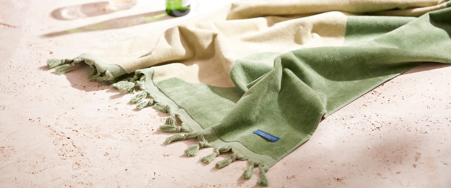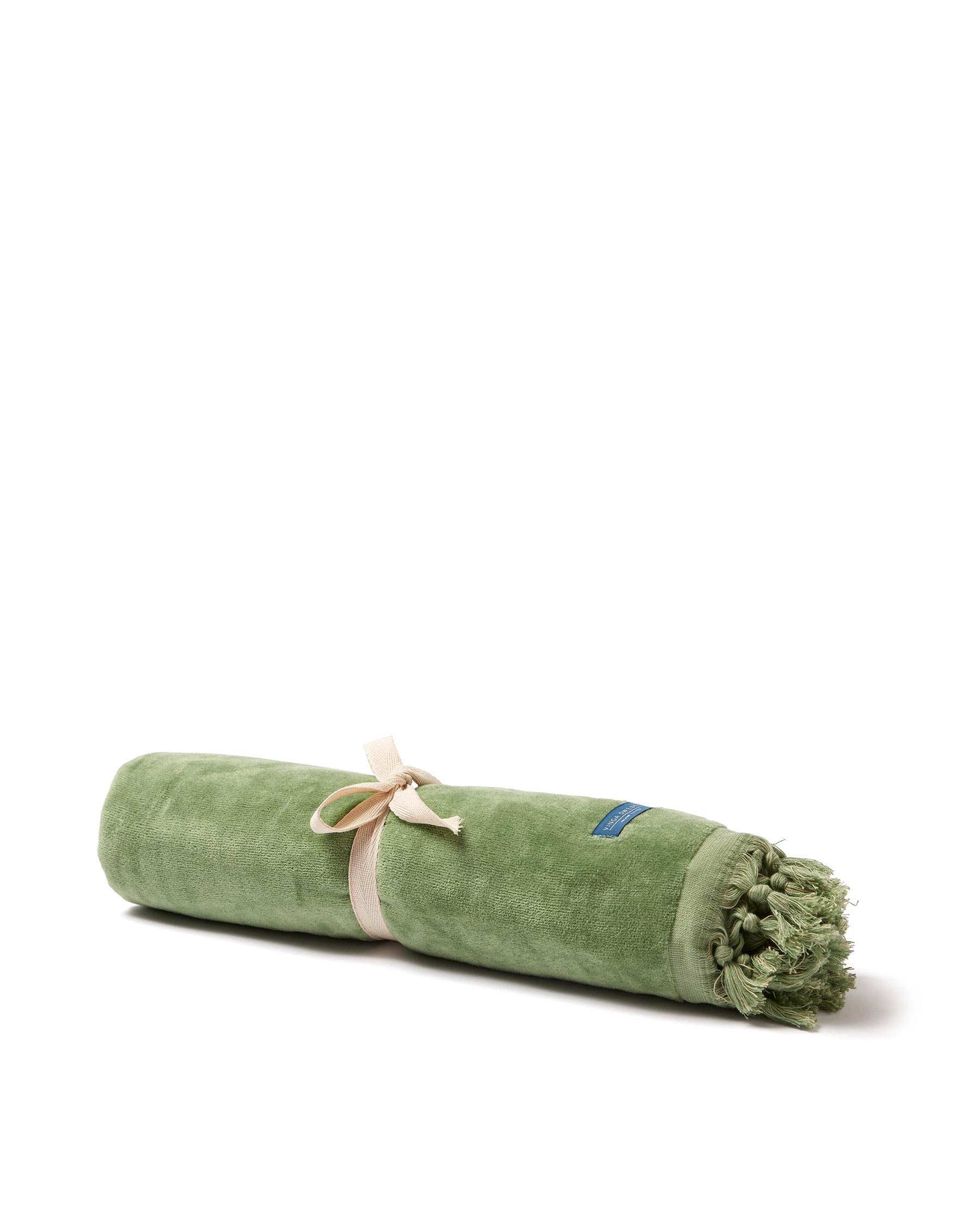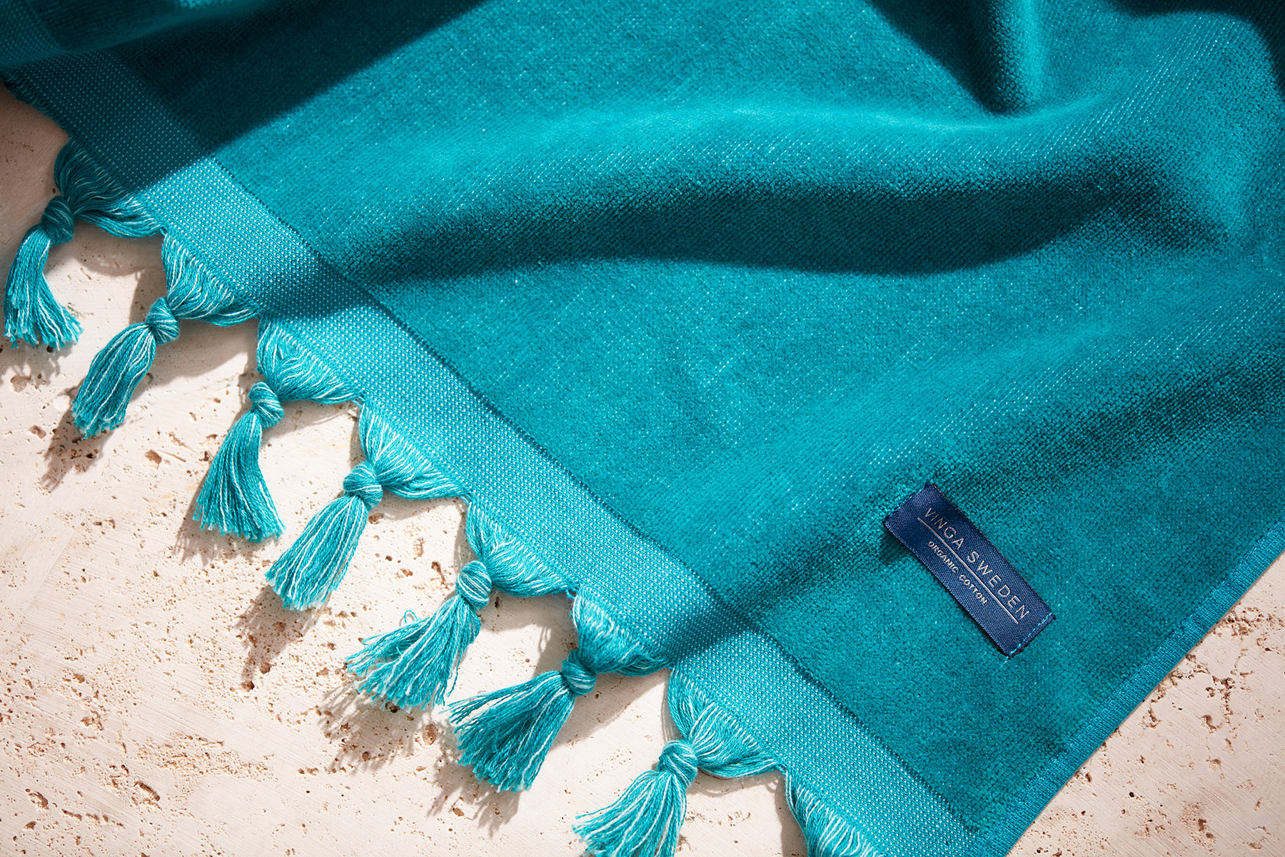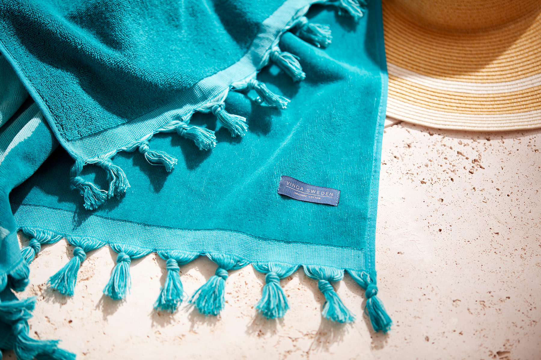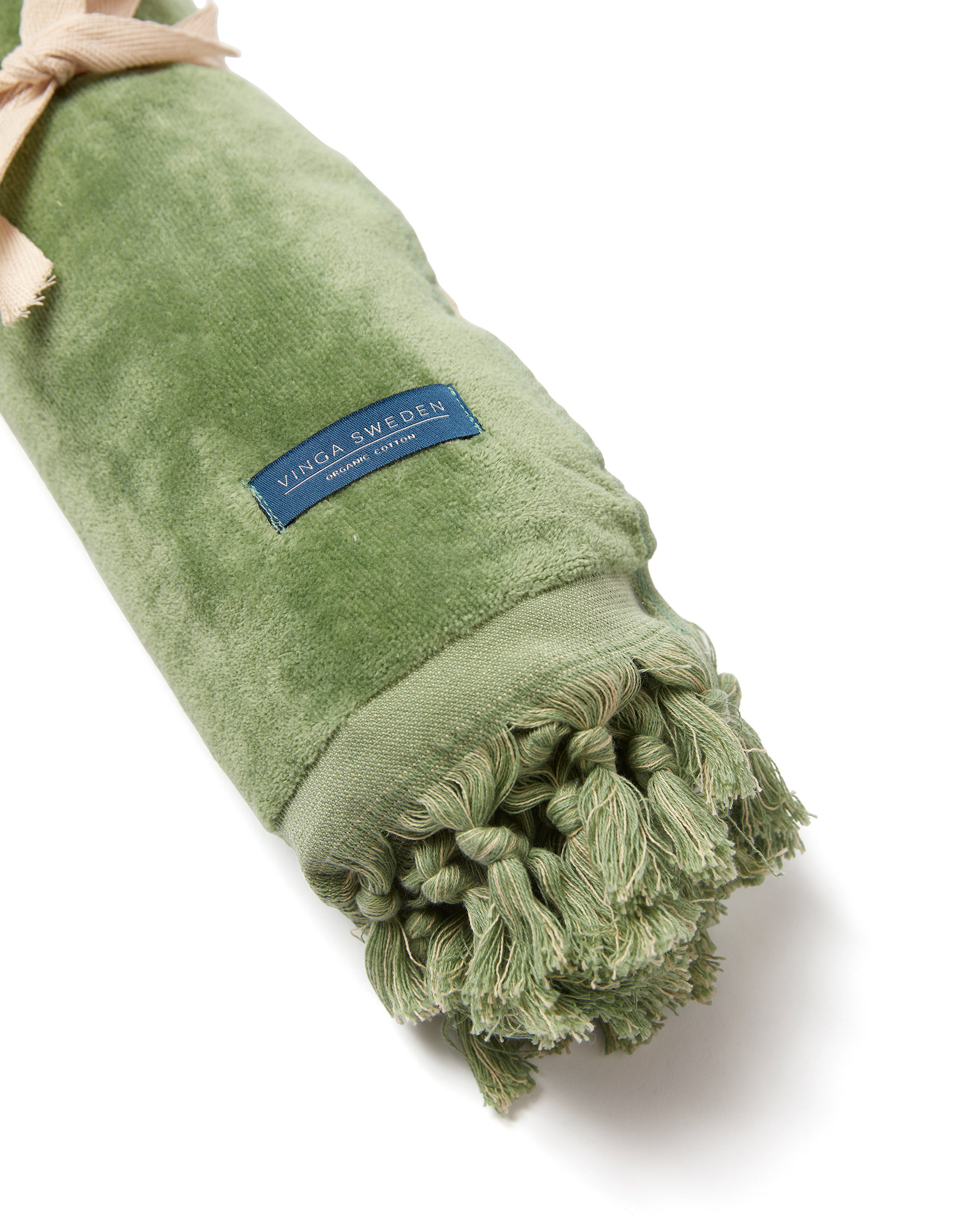 Velourbadlakan tillverkat i 100% ekologiskt odlad bomull (GOTS). Handduken är perfekt att ta med sig ner till stranden eller till poolen och gör din utevistelse till ett speciellt tillfälle.
