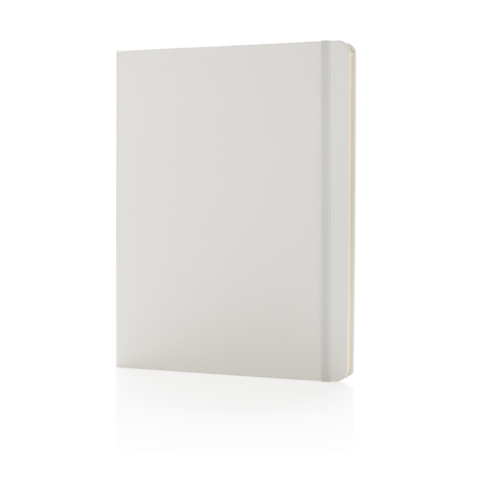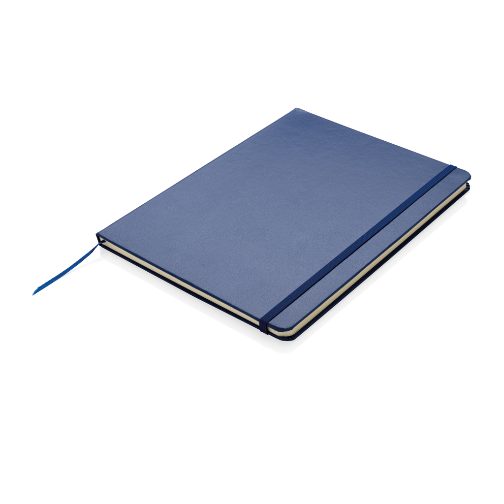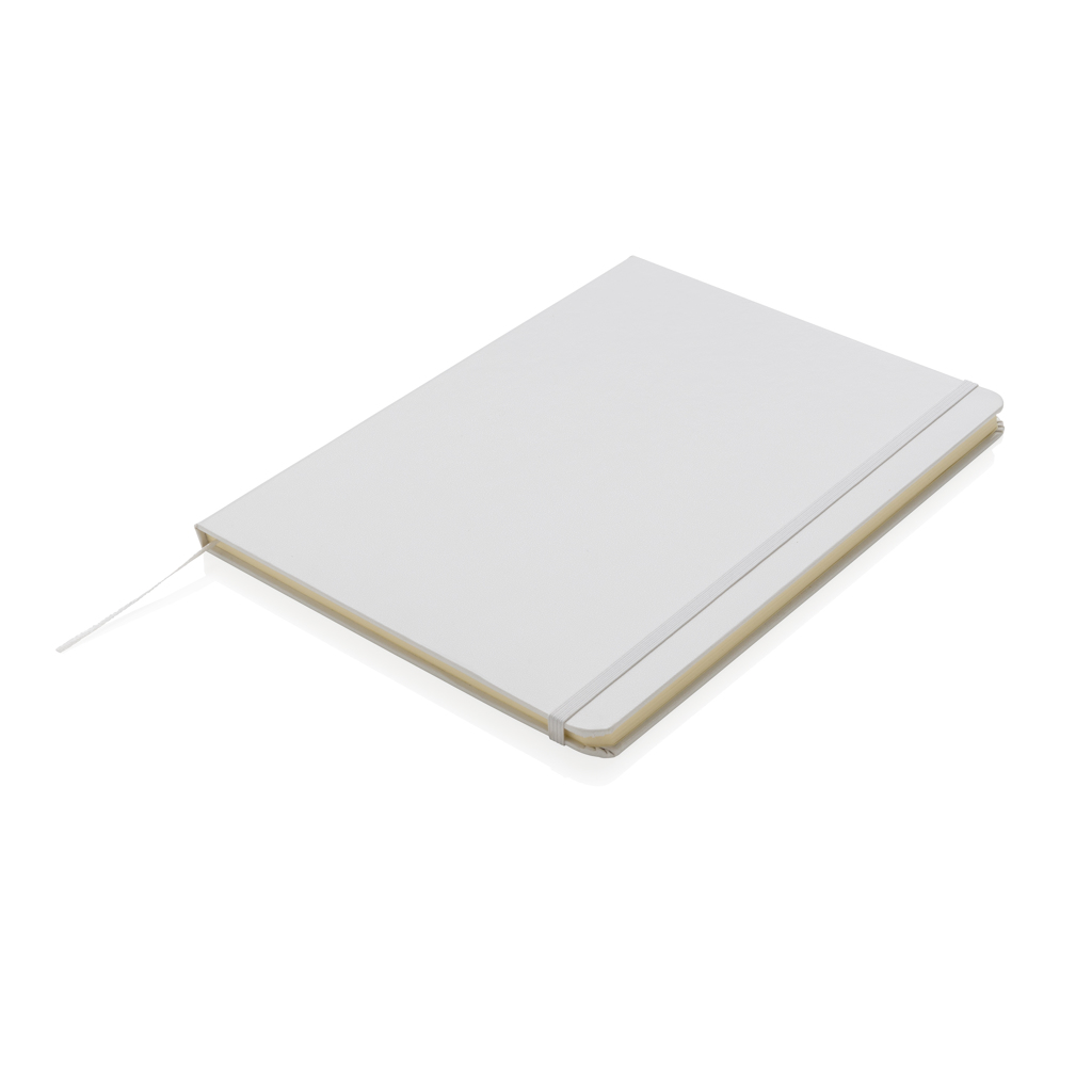 Linjerad hardcover anteckningsbok med elastiskt band och siddelare. B5 storlek, 19x25cm. 144 krämfärgade sidor, 70g/m2.