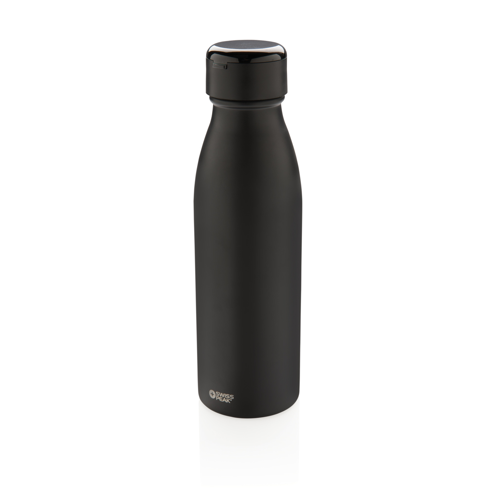 Läckagesäker dubbelväggig vakuumisolerad flaska med trådlösa minihörlurar som kan förvaras inuti locket. 40 mAh batteri ger en speltid på upp till 2 timmar. 60cm lång micro USB-kabel medföljer. 304 SS på insidan och 201 SS på utsidan håller din dryck varm upp till 5 timmar och kall upp till 15 timmar. Volym 580ml.