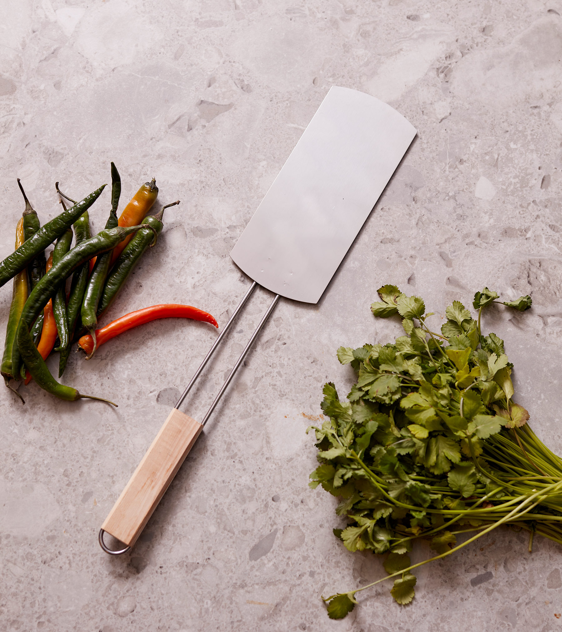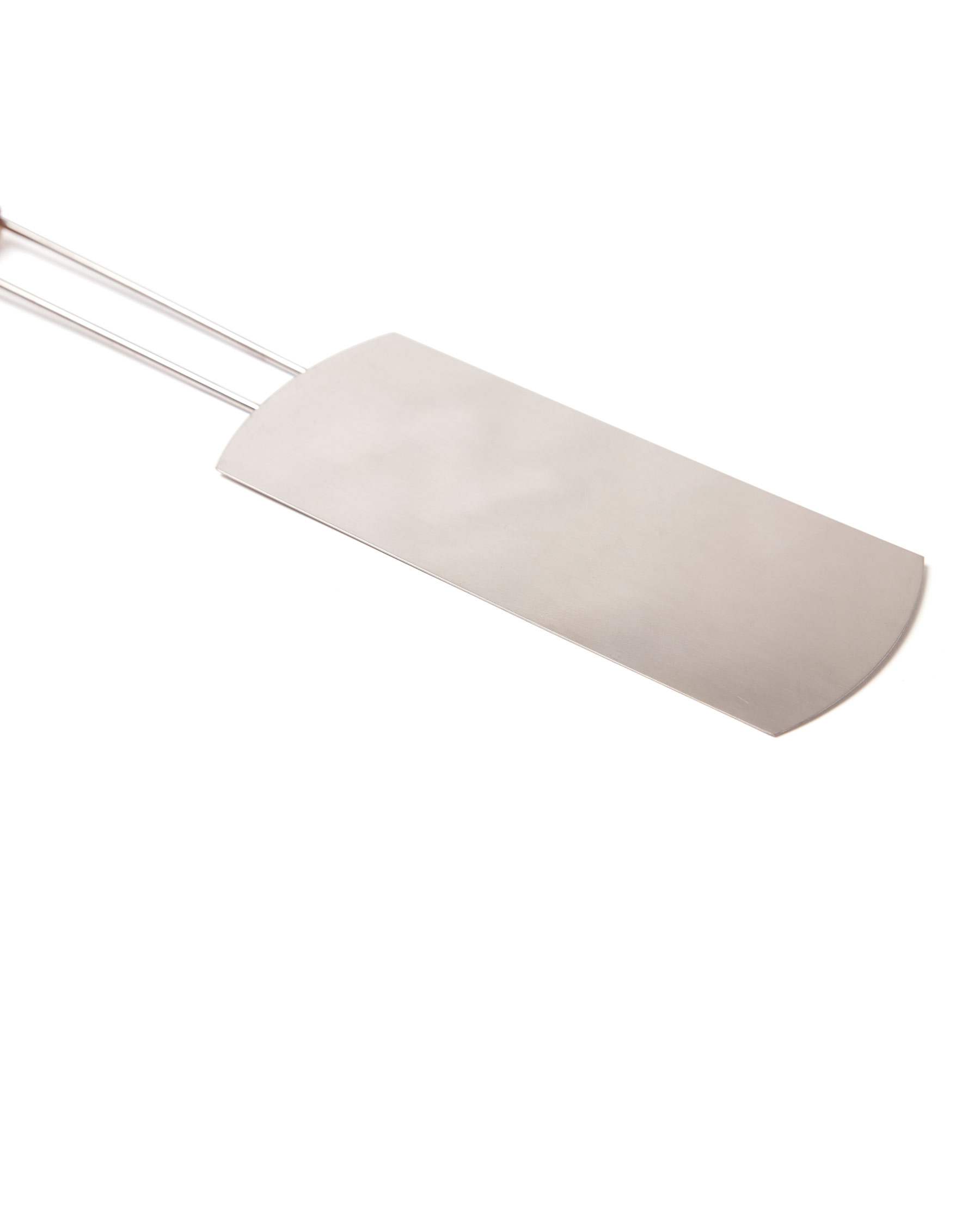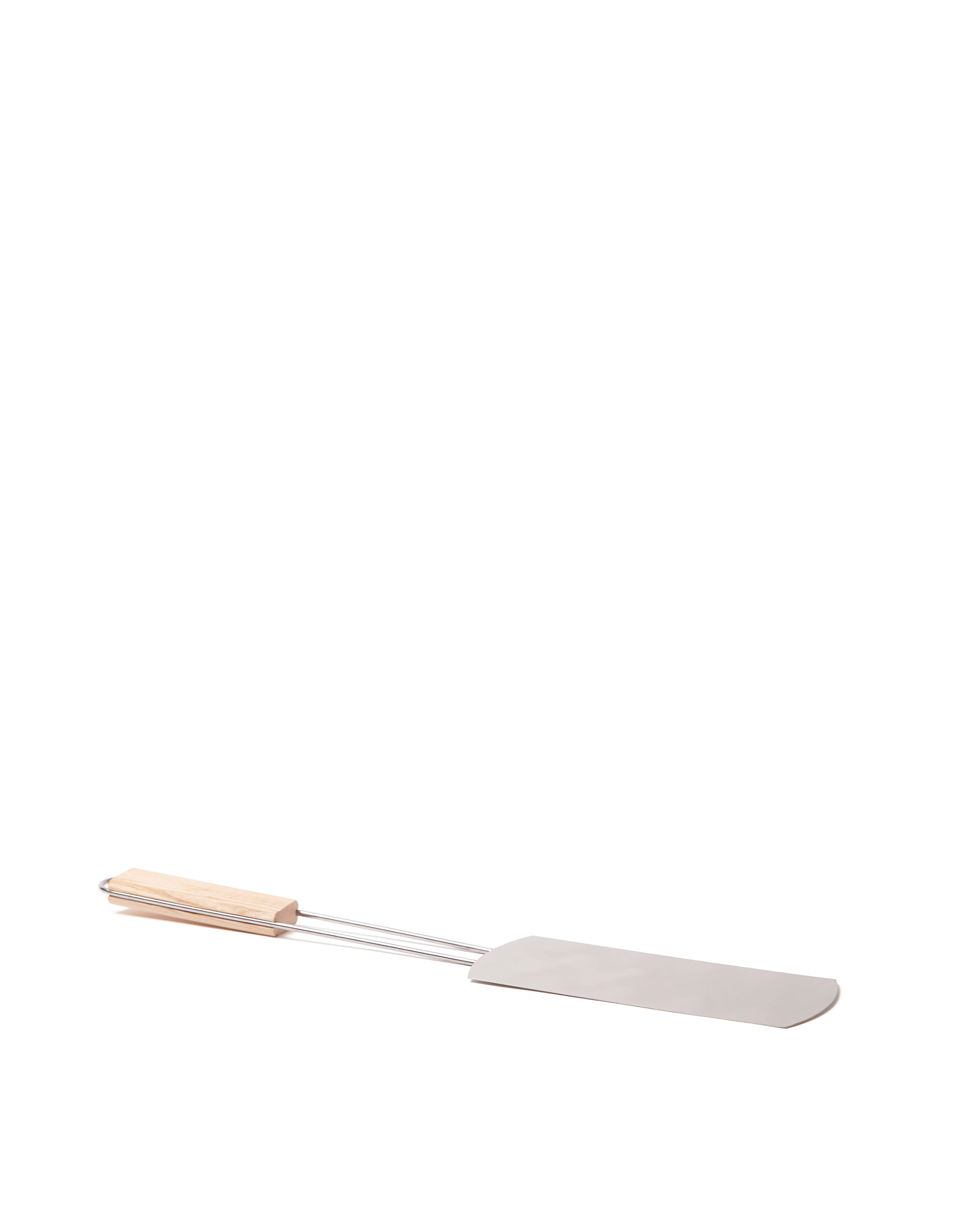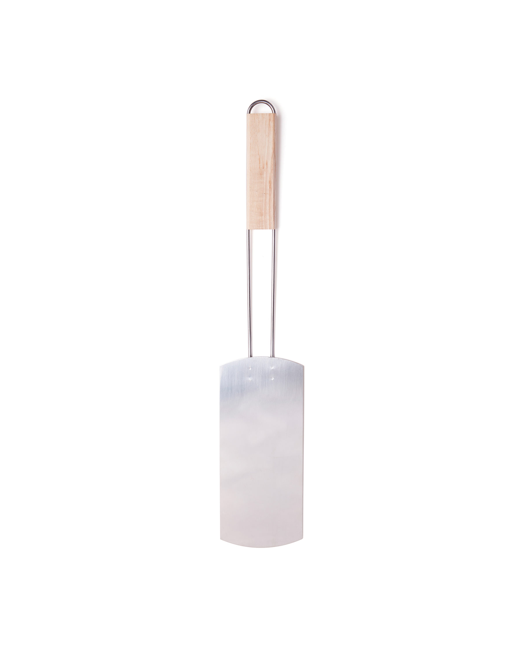 Bred stålspade gjord i rostfritt stål med ett långt trähandtag. Den tunna stekspaden gör att den passar utmärkt till flippa såväl pannkakor på grillen till korv. Dessutom perfekt spade att ta med på utflykter då den väger lite.