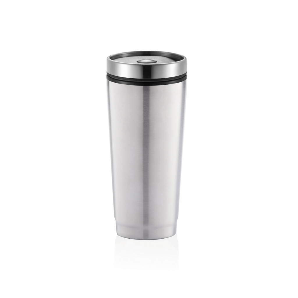 Storsäljande termosmugg som rymmer 350 ml. Har en smidig push-mekanism som gör att du kan öppna/stänga locket med en hand. Utsidan av muggen i rostfritt stål och insidan i PP-plast. Registrerad design®