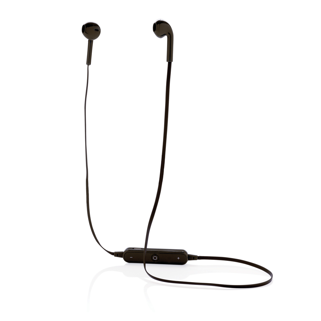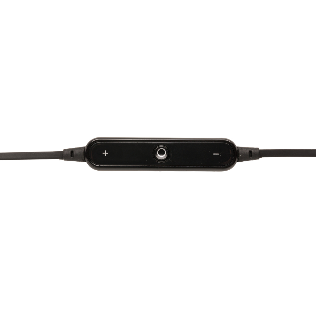 Trådlösa hörlurar med 60 cm TPE-kabel. Öronsnäckorna är lämpliga för både sport och för daglig användning på grund av deras bekväma passform. Inklusive mikrofon för att svara på inkommande samtal samt volymknapp. Enheten använder BT 4.0 för smidig anslutning till din mobila enhet. 55 mAh batteri, ger upp till 3 timmar speltid. Räckvidd upp till 10 meter. Inklusive EVA-väska med blixtlås.