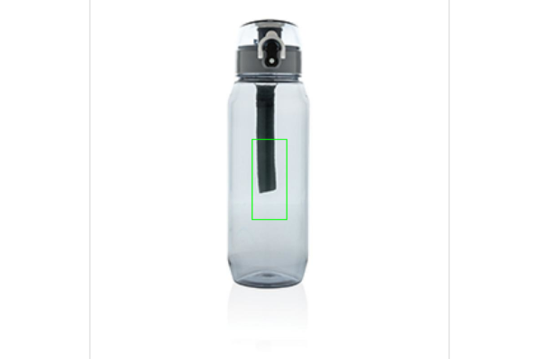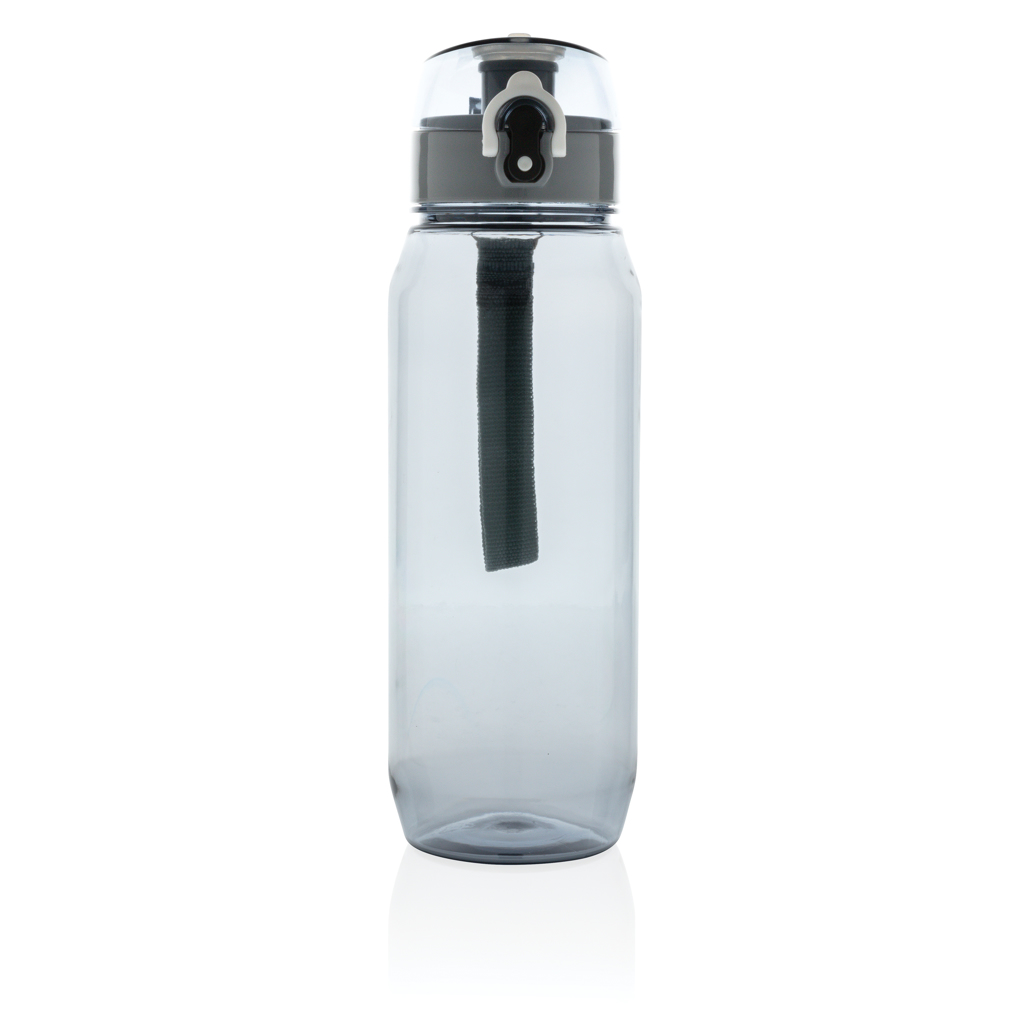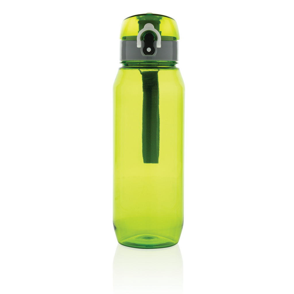 Läckagesäker tritanflaska med låsbart lock och öppningsfunktion lämpad för enhandsfattning. Inklusive bärrem. Doftfri och 100% BPA-fri. Volym: 800ml.