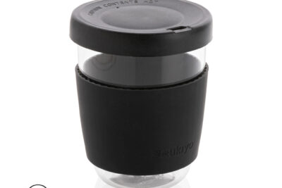 4 keramikmuggar utan handtag som passar både till fika och middag. Vit design med en svart dekorkant. Levereras i en giftbox av kraftpapper. Volym: 120ml.
